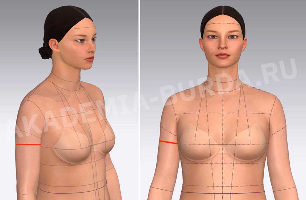 Высота груди – измерение от самой высокой точки плечевого шва до самой выступающей точки молочной железы.