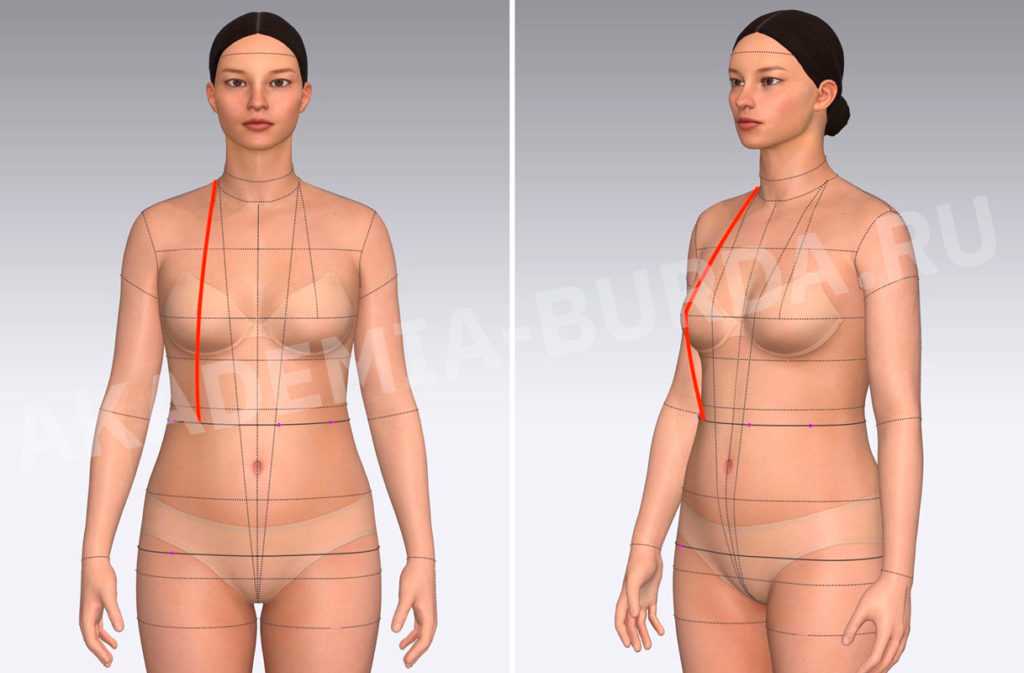 Впк (высота плеча косая) — измеряется от конечной плечевой точки до пересечения линии талии с позвоночником. При данном измерении лучше использовать плечевую накладку.