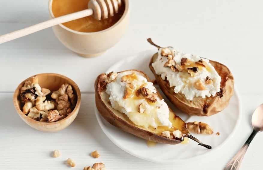 Второй завтрак: запеченная груша с медом и грецким орехом.