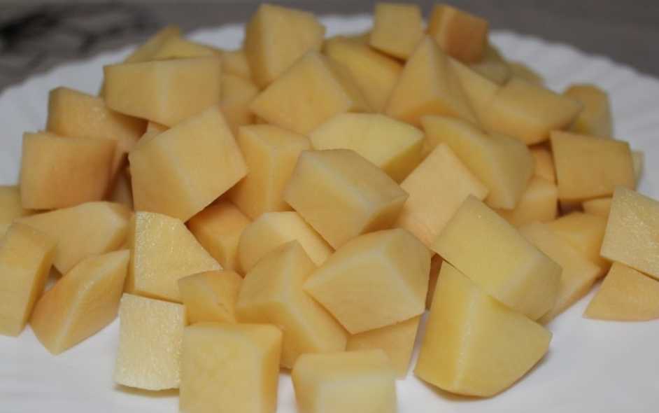 - подготовьте картофель, нарезав его мелкими кубиками;