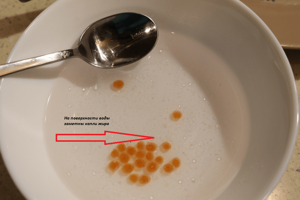 Искусственная икра, залитая кипятком, создаст незначительное белковое помутнение, а чаще – вообще ничего. Ведь процент белка в составе такой икры очень незначителен или отсутствует вовсе. Вода останется прозрачной, а на ее глади появятся капельки жира.