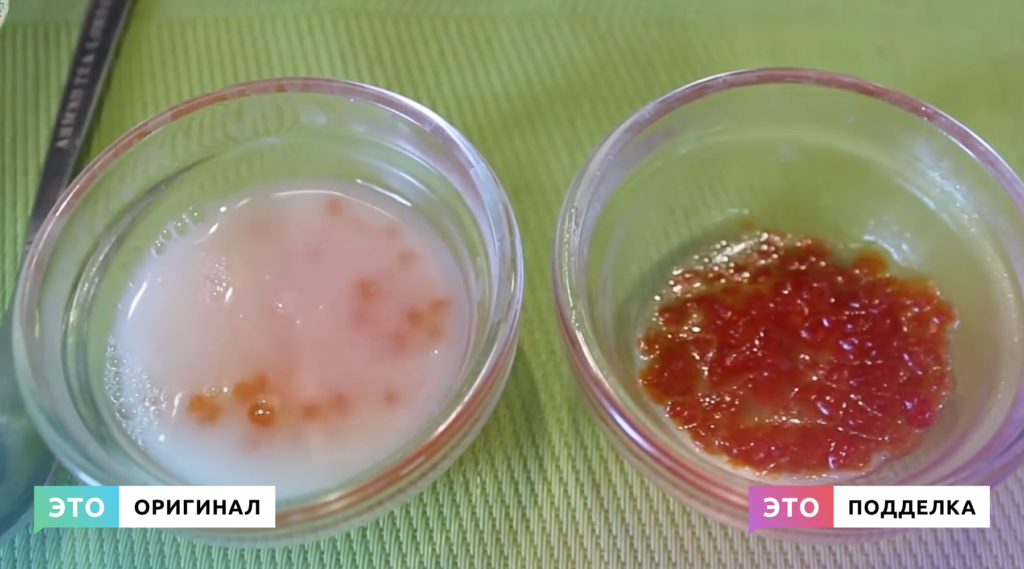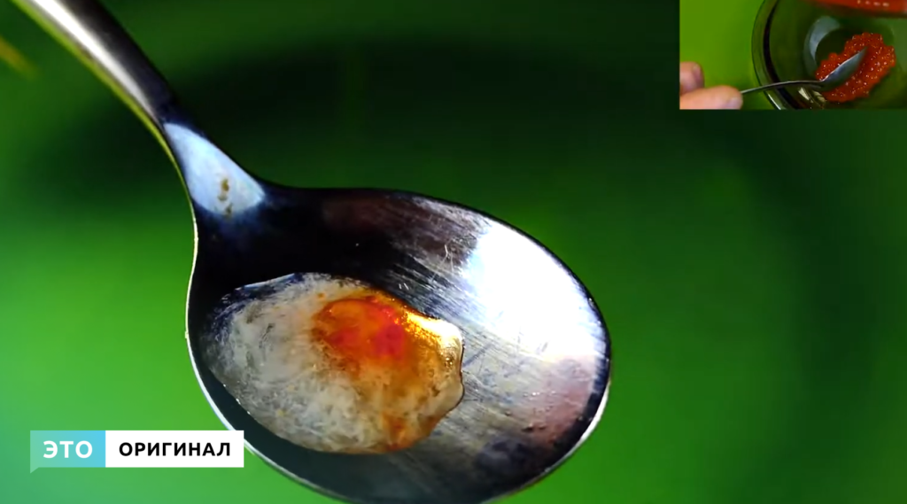 Представим такую ситуацию: на рынке заметили очень привлекательную икру по достойной цене, но не знаете, как отличить икру от подделки. На помощь придет монетка и зажигалка. Необходимо нагреть икринку на металлическом предмете и посмотреть на осадок – если он плотного белого цвета, можно смело брать!