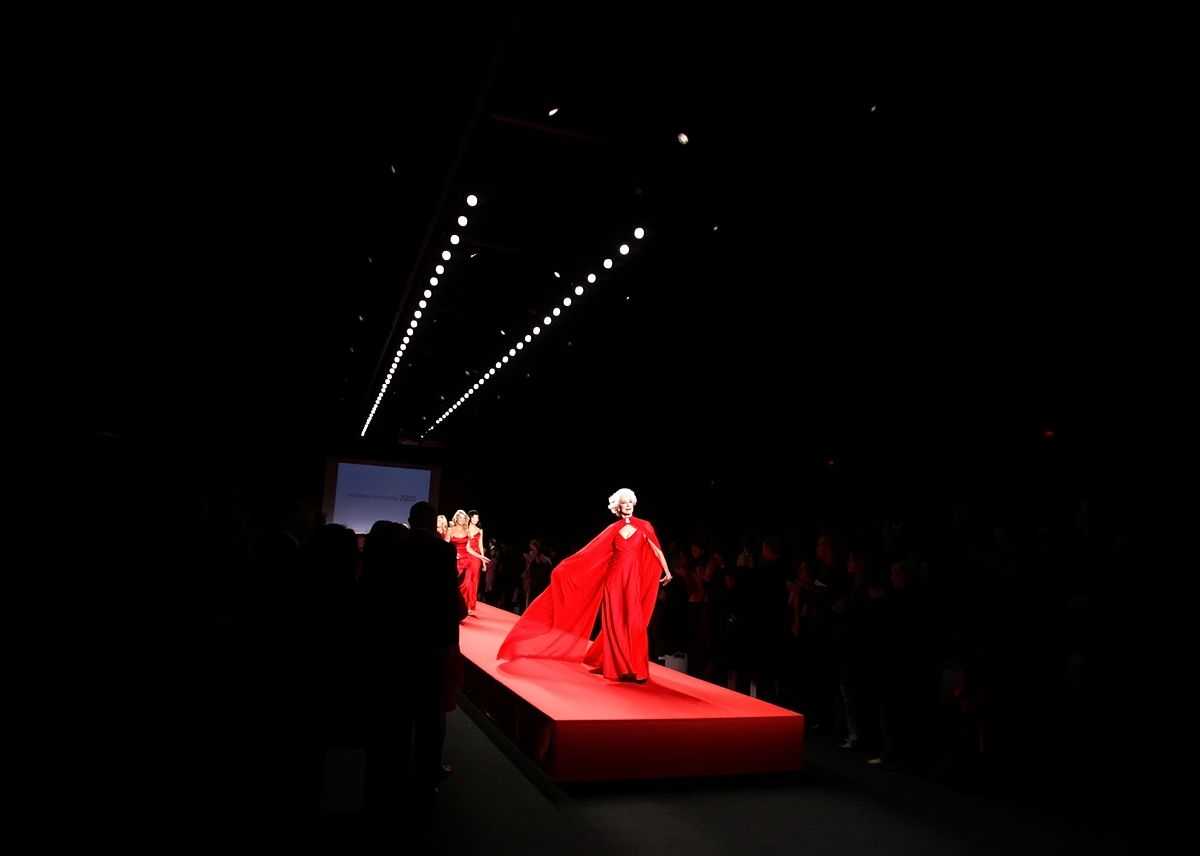 На подиуме в коллекции красных платьев Heart Truth во время Недели моды Olympus в Нью-Йорке, 4 февраля 2005 г.