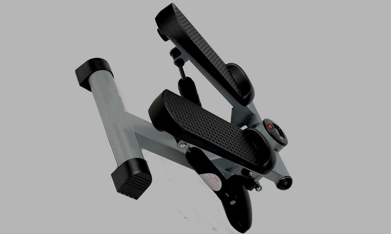 - Мини-степпер — характеризуется максимальной компактностью. Состоит из одной платформы с двумя педалями. Некоторые аппараты дополнительно снабжены эспандерами для одновременной нагрузки на ноги и руки. Преимущество — самая доступная цена и малые габариты, позволяющие хранить его под мебелью и брать в поездки на автомобиле. Недостатки — малая траектория движений спортсмена и, как правило, отсутствие регулятора нагрузки.