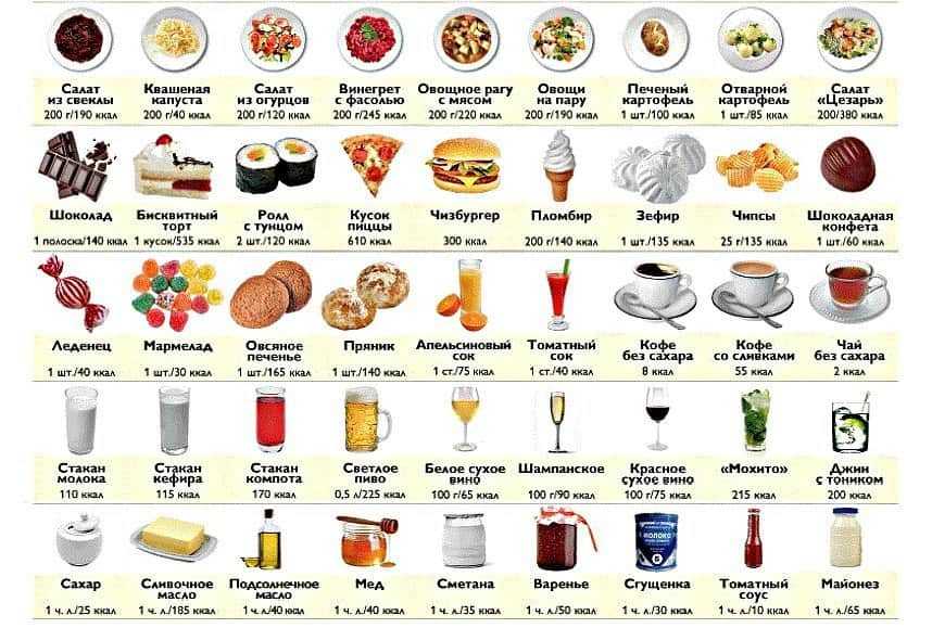 Со временем вы научитесь «на глаз» определять энергетическую ценность того или иного продукта, не сверяясь с таблицей. Так, калорийность растительной пищи обычно варьируется в пределах 50 Ккал, круп — 130 Ккал, а мяса — 170 Ккал. Одно куриное яйцо в себе содержит 80 Ккал.