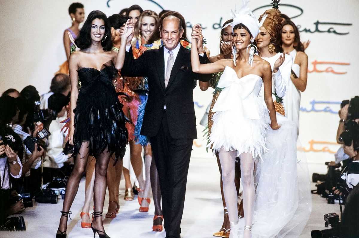 Ясмин Гаури, Оскар де ла Рента и Надин дю Боспорус на шоу Oscar de la Renta Prêt-à-Porter Весна/Лето 1992 в Париже, октябрь 1991 г.
