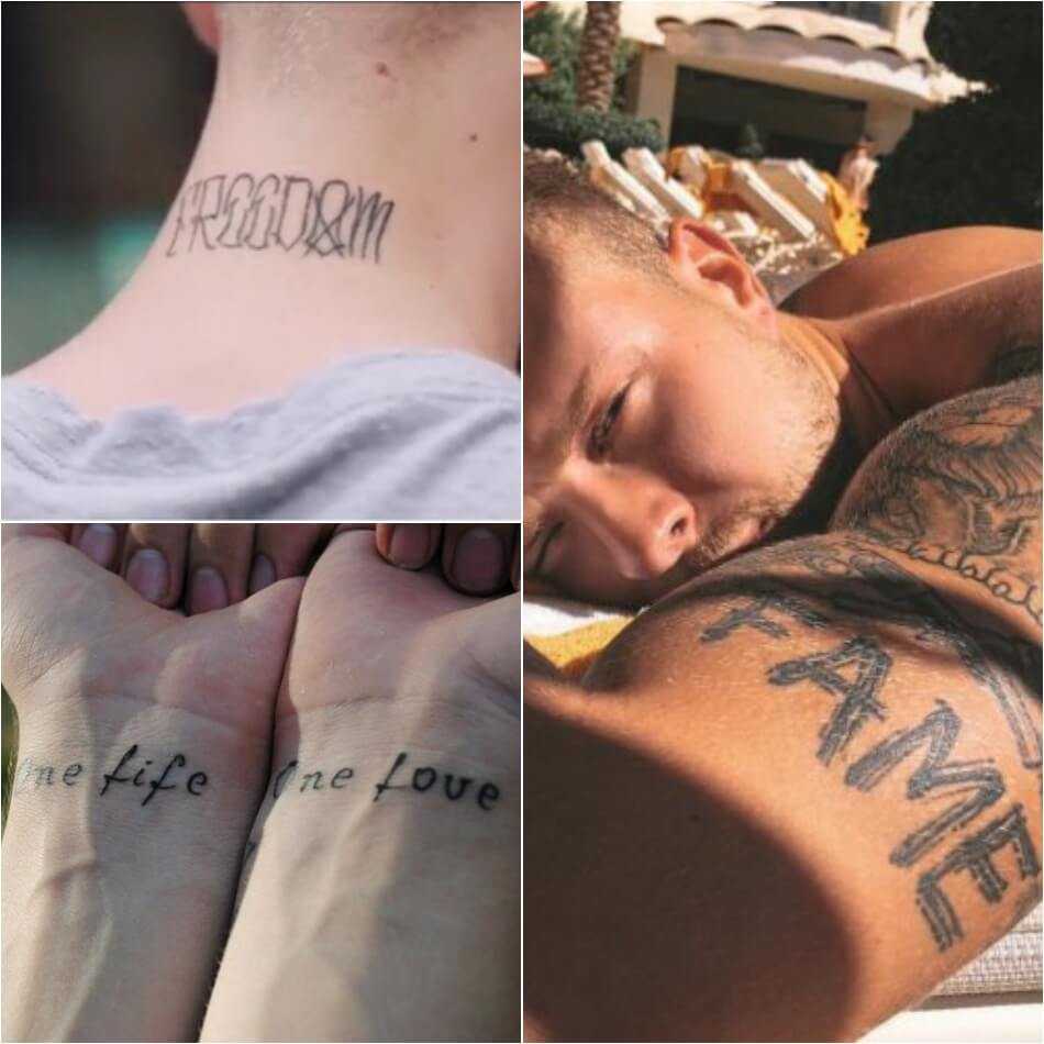 Что касается татуировок, то они появились на теле исполнителя задолго до сотрудничества с «Black Star Inc». Первую надпись «Cum Deo» («С Богом») Егор набил в 14 лет. Затем последовали строки на запястьях, рисунок «руки в позе мольбы», надписи «Faith» и «Freedom» и т.д. С каждым годом количество татуировок растет, и певец пока не собирается останавливаться.
