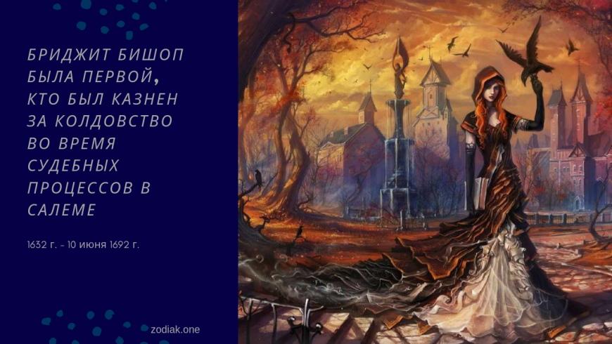 Зодиак связывает вас с Бриджит Бишоп, первой ведьмой, осужденной на смерть во время охоты на ведьм в Салеме в 1692 году.