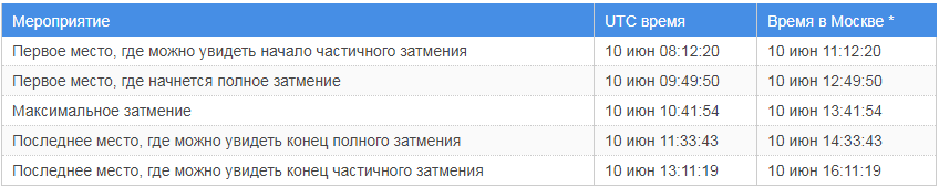 Хронология Солнечного затмения 10 июня 2021