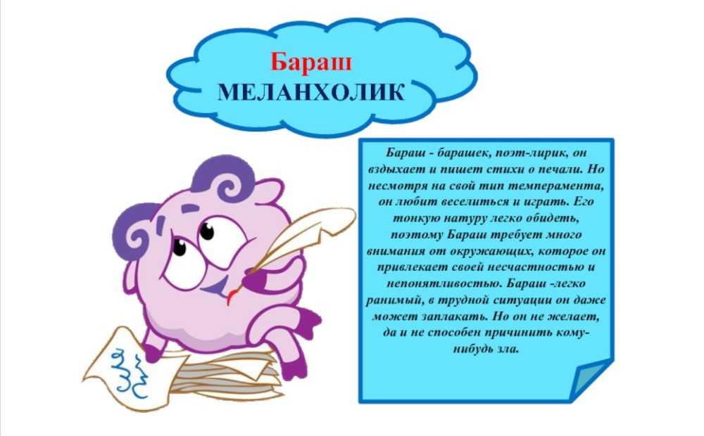 Самый пассивный и ранимый тип темперамента. Не доверяют людям, чувствительны и переживательны. Ведут себя сдержанно и замкнуто. Избегают больших шумных компаний. Часто это творческие люди, предпочитающие проводить время за чтением книг. Задумчивые, тихие и тревожные личности.