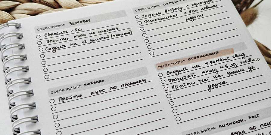 Давайте разберем на примере? Допустим, моя страдающая сфера — это отношения. Их я оценила всего на 5 баллов из 10. Тут же задаю себе вопрос: Что мне сделать для их улучшения хотя бы на 2 балла? Какие действия предпринять? И здесь начинается самое интересное — мы должны прописать для себя небольшой план того, как наладить отношения с нашей второй половинкой. Подумать, какое совместное времяпровождение продвинет вас.