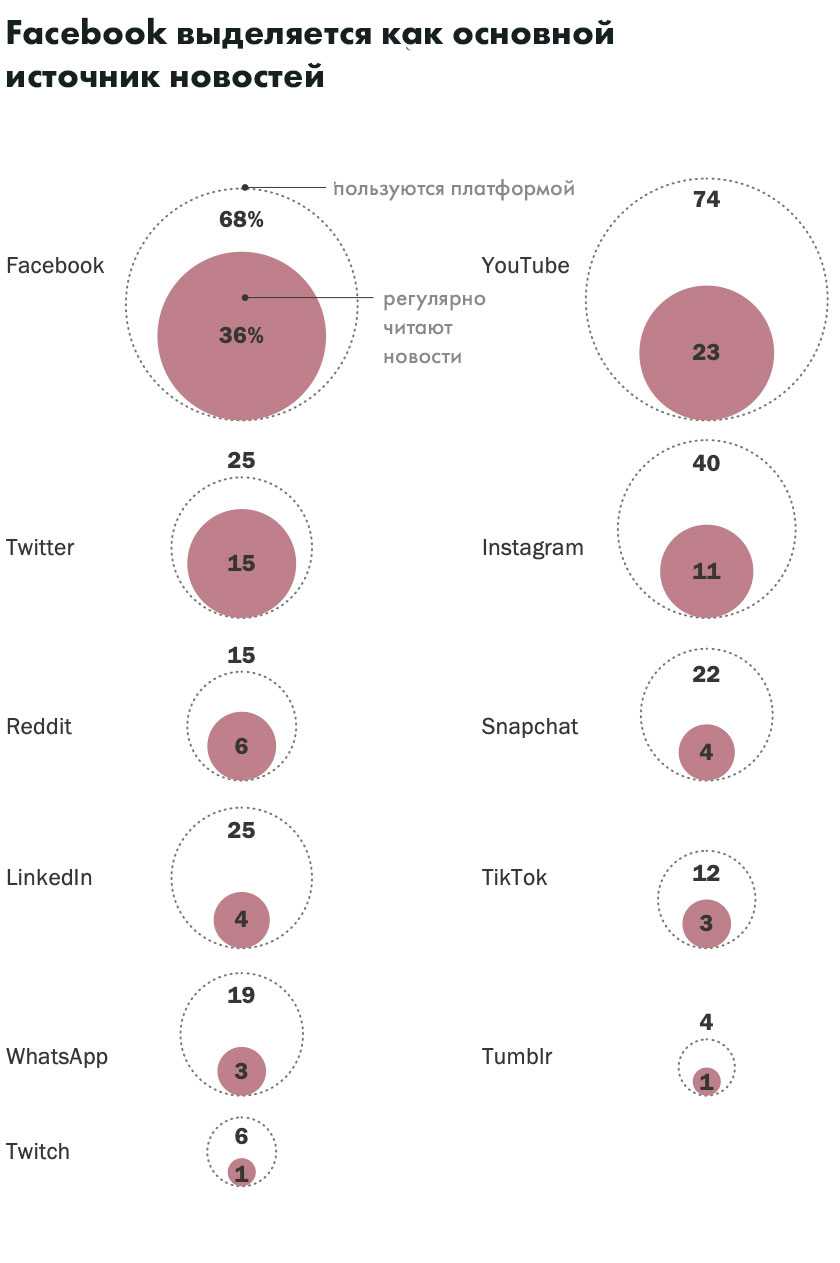При опросе об источниках новостей 53% американцев ответили, что они получают их «часто» или «иногда» через социальные сети, причем Facebook занимает первое место в этом списке.