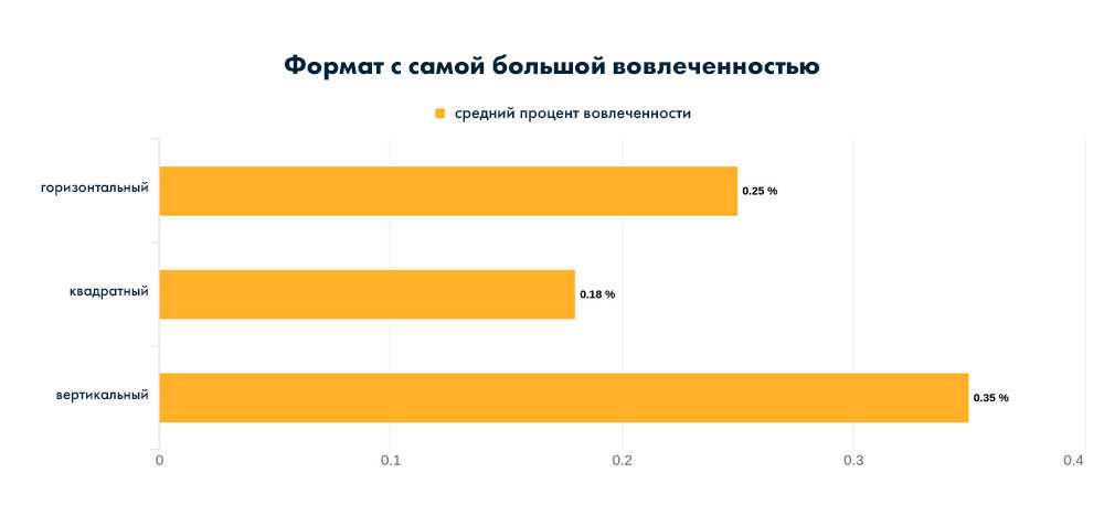 Среди горизонтальных, квадратных и вертикальных форматов по самому высокому среднему коэффициенту вовлеченности — 0,35%.