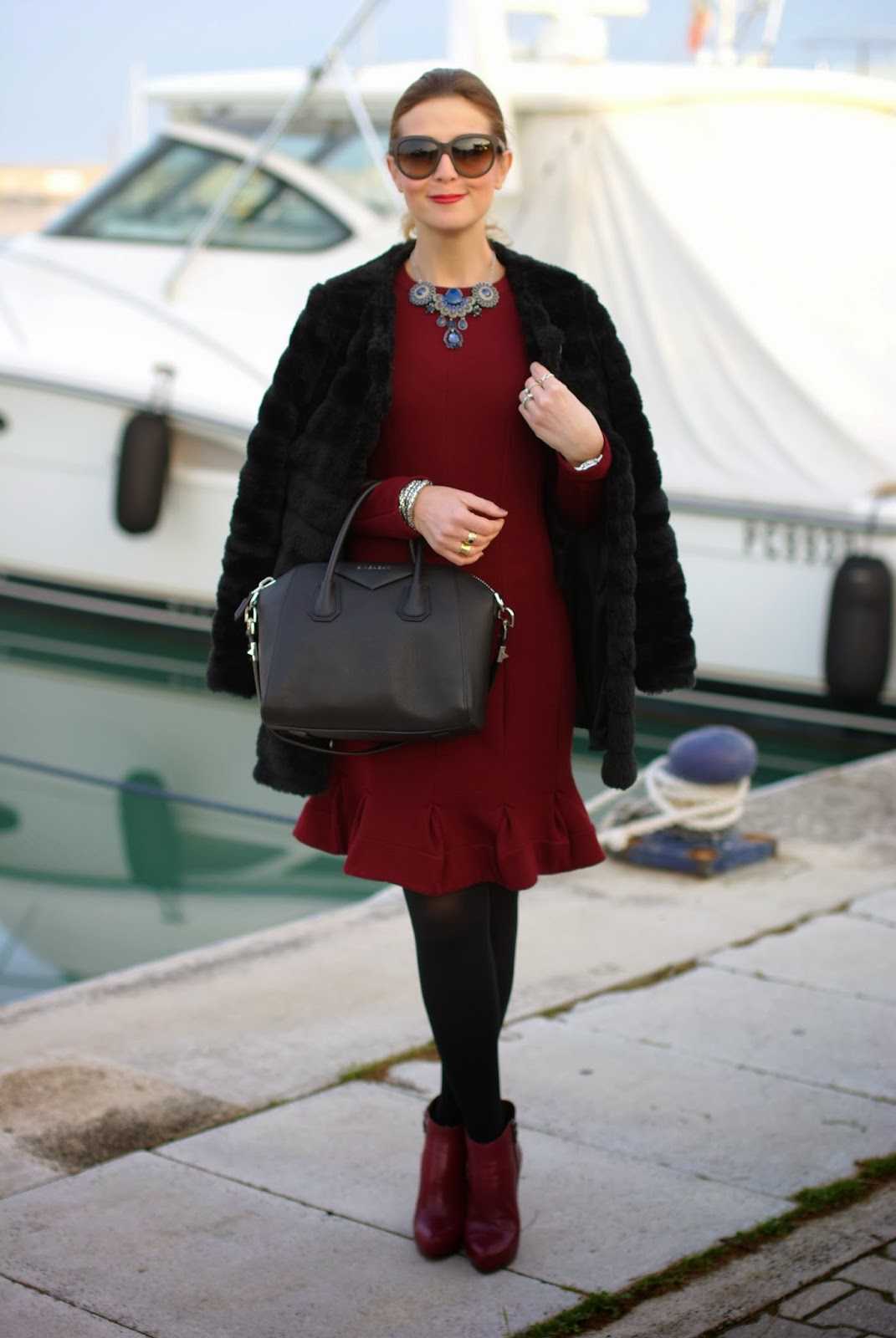 Женские бордовые ботинки отлично подходят для торжественных мероприятий, праздничных выходов. С ними можно составлять такие образы: