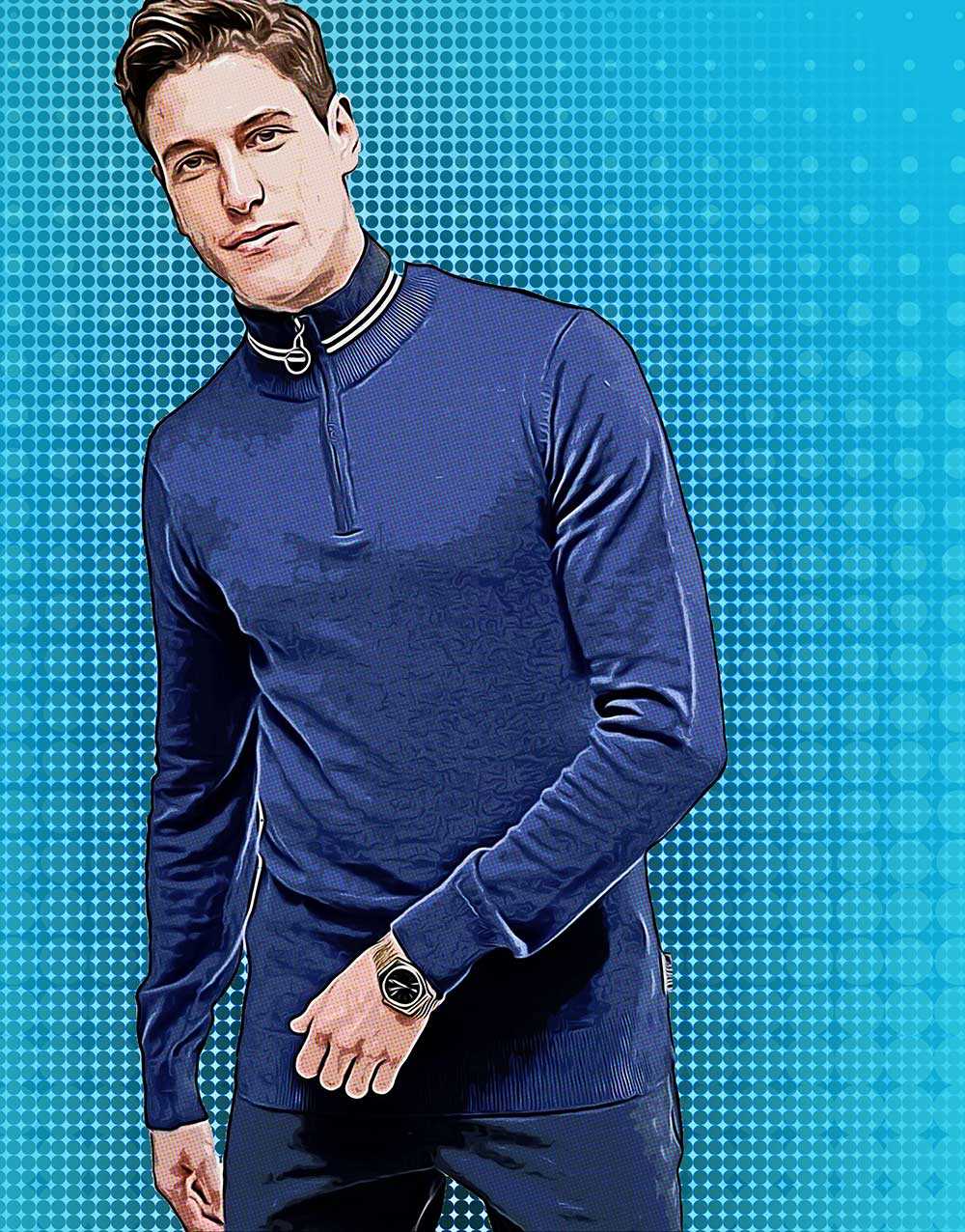 Это вариация олимпиек, которая ассоциируется со спортом. Вещи с молнией прекрасно смотрятся, если не надевать поверх них пиджак. В противном случае будет казаться, что мужчина оделся во что попало, в вещи с чужого плеча.