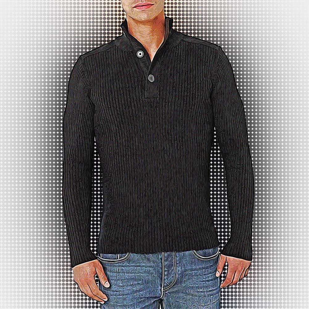 Спортивным вариантом свитера является модель с застёжкой у горла. В застегнутом состоянии ворот модели традиционно высокий. А если расстегнуть молнию или кнопки, то воротник мгновенно превращается в отложной.