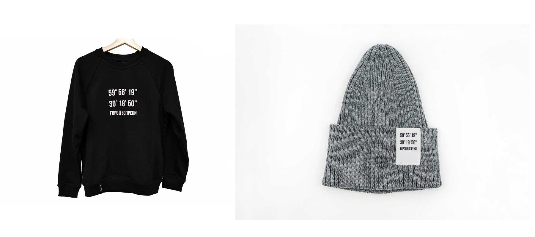Сеть кондитерских Буше тоже имеет фирменную линейку лимитированного мерча. Коллекция «Город вопреки» – это прекрасные вещи с питерским духом. Дождевики, шапки, худи и свитшоты с принтами географических координат Петербурга – замечательная идея. Приобрести вещи можно в самих кондитерских.