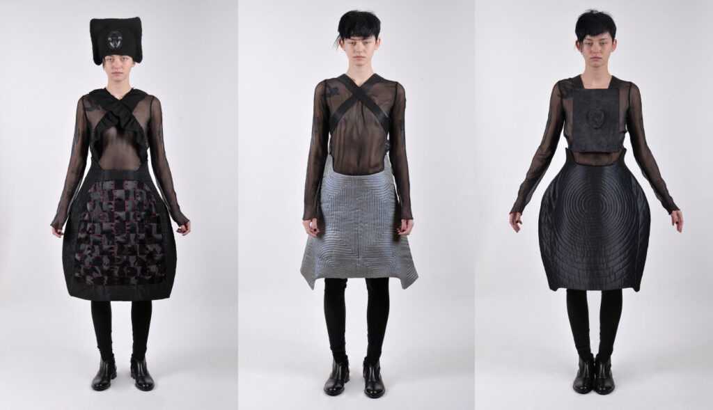 Основательница известного в Грузии бренда Chubika. Нино работает в очень сложной технике складывания ткани. При помощи создания множества необычных складок она получает имитацию природных материалов: горных пород, коры дерева или фактуры листьев. Тёмные цвета и необычные силуэты в сочетании с мрачными объемными аксессуарами создают ощущение потустороннего мира, прорывающегося в нашу обыденность.