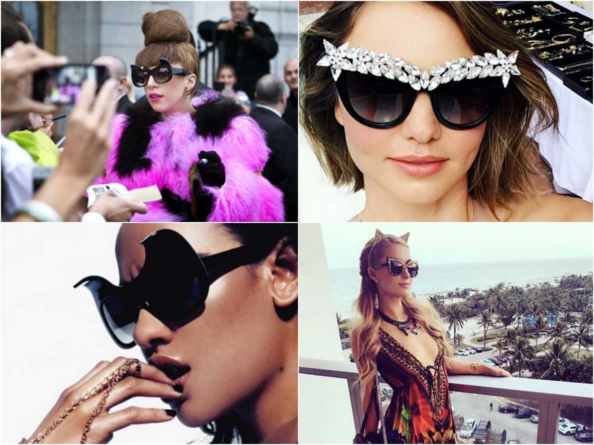 Знаменитости с момента появления марки не упускают возможность засветиться в модных очках, дизайн которых наполнен драмой, декадансом и гламуром.