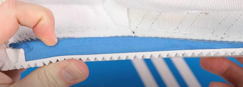 А в Adidas Superstar наоборот — в основе подошвы цельный “лист” полиуретана. Соответственно у Superstar лучше амортизация и пятка не провалится в подошву. К тому же подошвы с “сеткой” как правило быстрее стираются.
