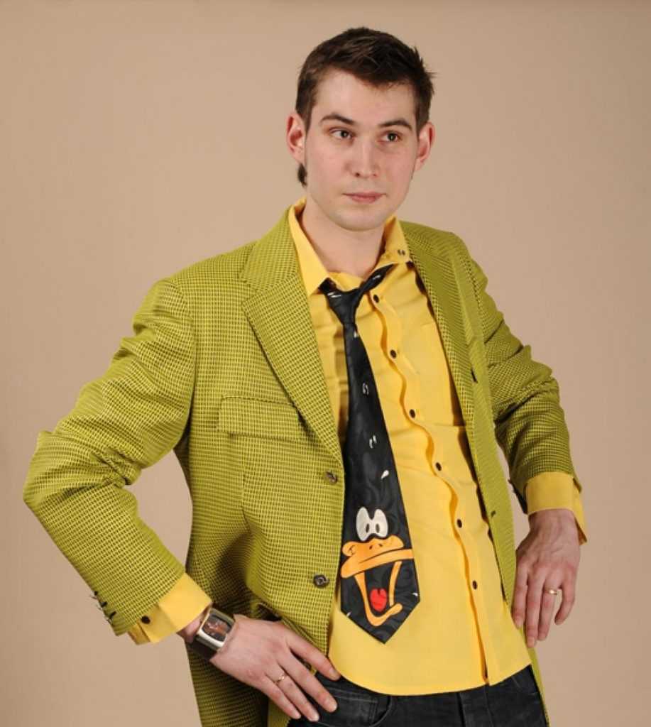 Если бы речь шла о женской моде, мы непременно посоветовали бы найти яркие блестящие лосины. Мужская дискотечная мода это спортивный костюм с цепью и кроссовками Адидас, широкие джинсы с заправленной в них яркой рубашкой оверсайз или черный пиджак с белой водолазкой.