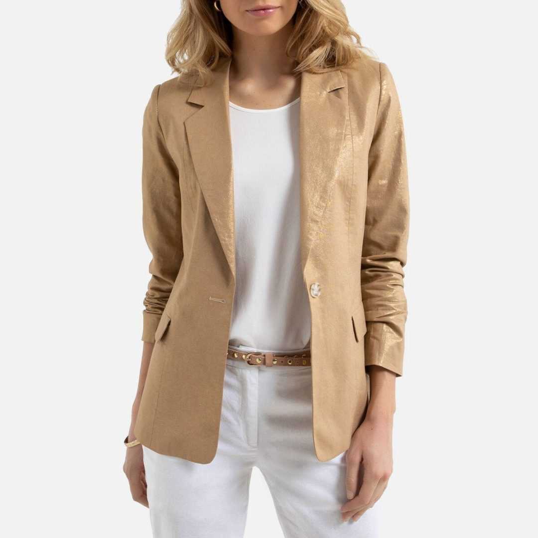 Серебристый металлик в моде уже давно, а для нового сезона дизайнеры предлагают носить розовые, золотые, бронзовые пиджаки с металлическим отливом.