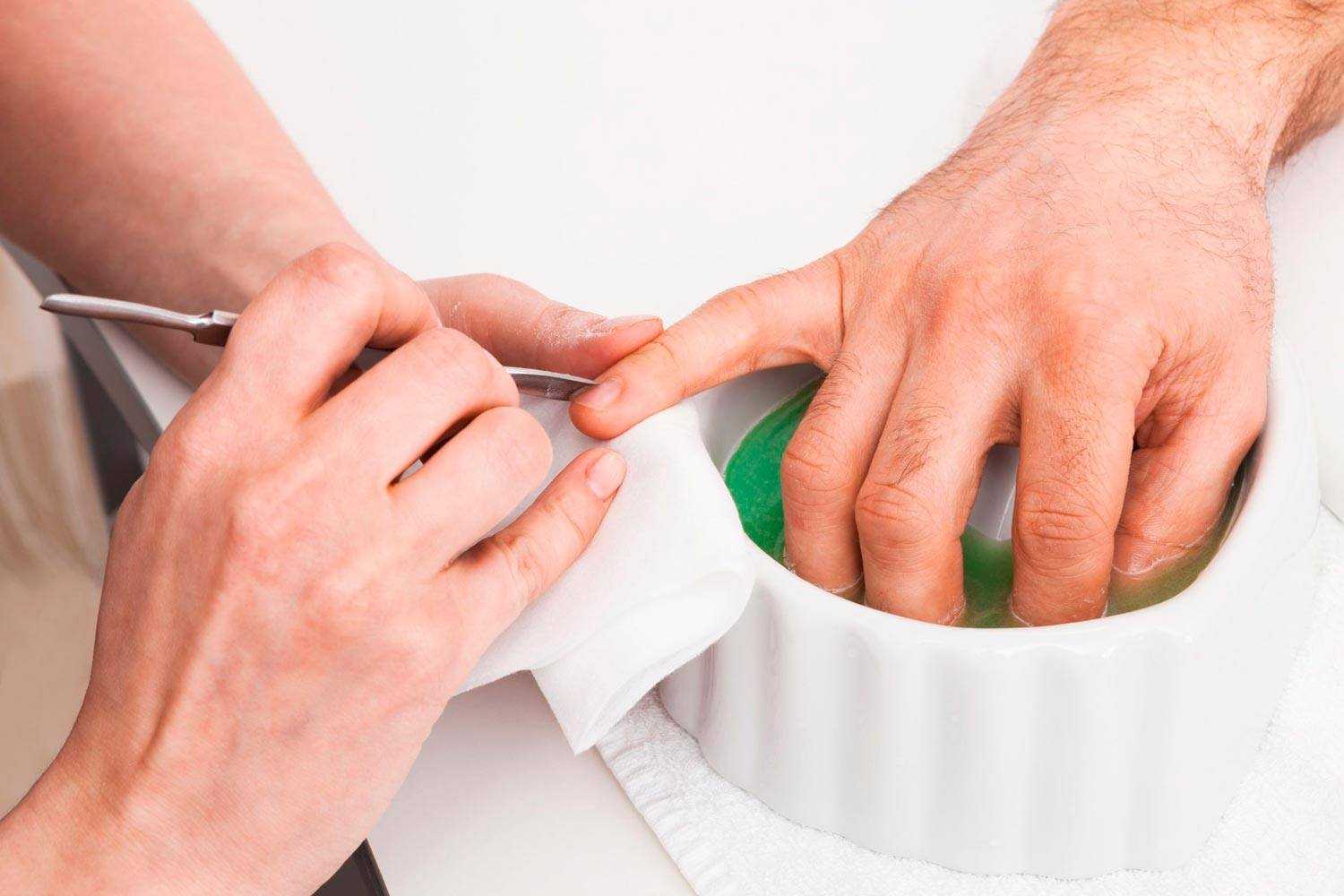 В этом случае руку клиента предварительно опускают в ванночку, чтобы размочить кожу и размягчить кутикулу. Данная процедура подойдет мужчинам, занимающимся физической работой.