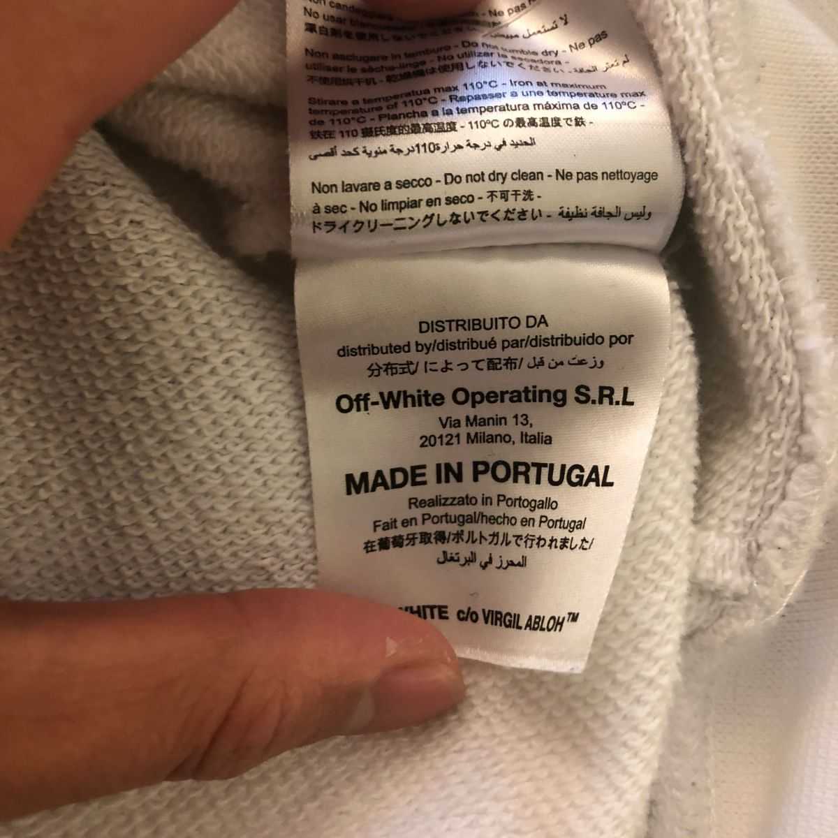 После 2016 г. футболки и худи Off-White выпускаются только в Португалии. Если при проверке штрих-хода окажется, что они сделаны в Италии, Франции, Китае и т.д., то все это подделки.