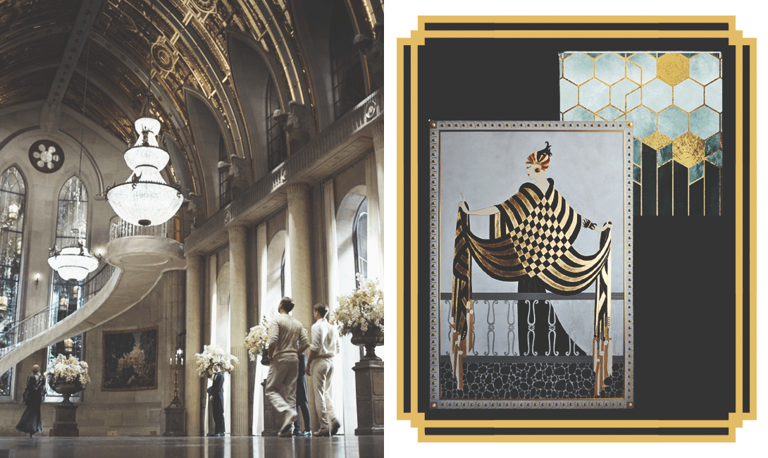 Перед организатором стоит непростая задача: блестящее, возмутительно дорогое на вид оформление без тени аляповатости. Высокий стиль Гэтсби, пусть в рамках вечеринки, предполагает наличие вкуса и чувства меры у хозяина дома. Пересмотрите экранизации: на первый взгляд, роскошный особняк таинственного «шпиона» будто утопает в праздничных декорациях. Но ни намека на перегруженность зритель не увидит.